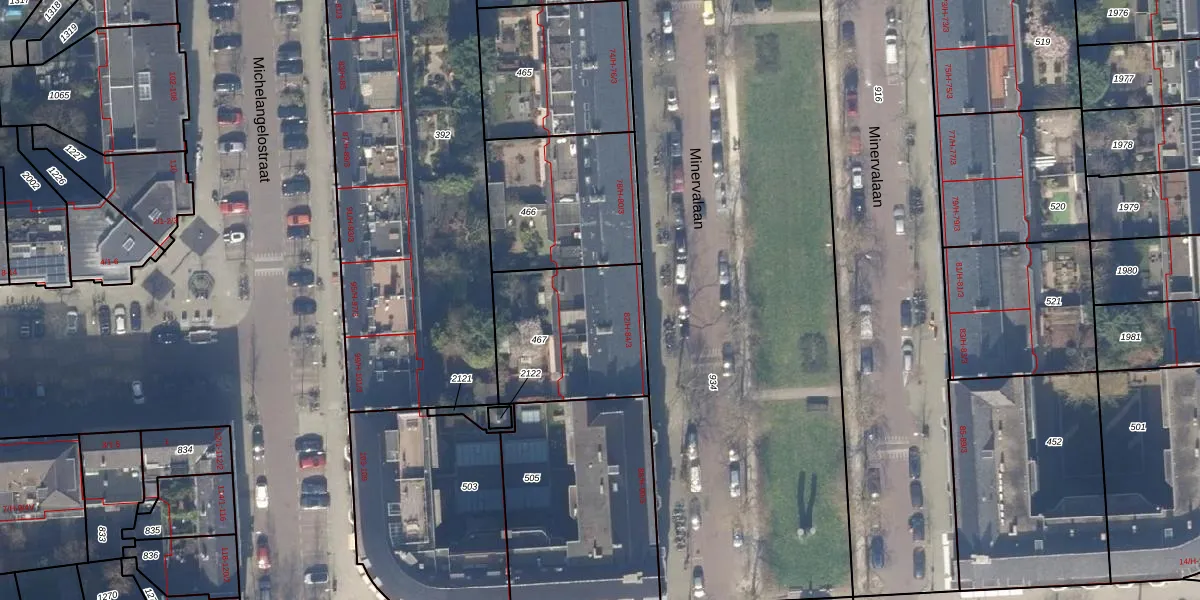 Minervalaan 82-1 is gelegen op kadastraal perceel ASD23AB467. Deze kadastrale aanduiding is uniek en wordt gebruikt door het Kadaster om eigendomsrechten en andere zakelijke rechten vast te leggen. Het perceel maakt onderdeel uit van de kadastrale gemeente Amsterdam.