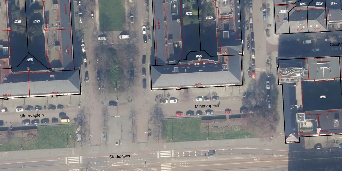 Minervaplein 1-3 is gelegen op kadastraal perceel ASD22Z1682. Deze kadastrale aanduiding is uniek en wordt gebruikt door het Kadaster om eigendomsrechten en andere zakelijke rechten vast te leggen. Het perceel maakt onderdeel uit van de kadastrale gemeente Amsterdam.
