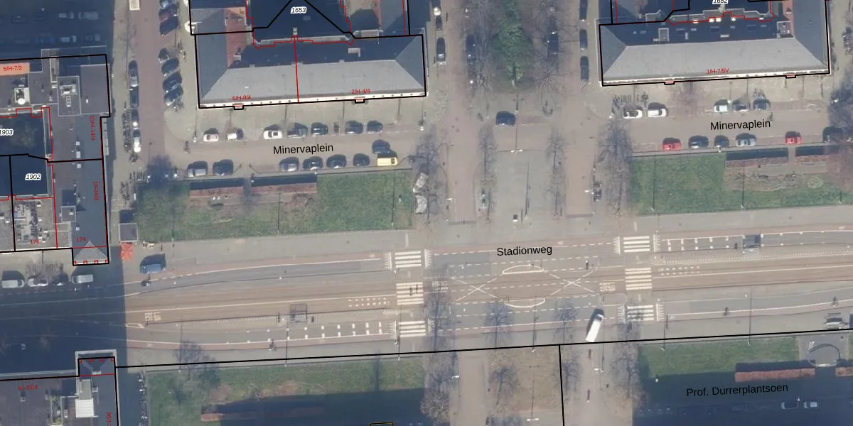 Het perceel waarop Minervaplein 24-M staat heeft een oppervlakte van 18,3 ha. Dit is een zeer groot perceel. De perceeloppervlakte wordt geregistreerd door het Kadaster. Gedetailleerde informatie over de maten van dit perceel kunt u vinden in het rapport Kadastrale kaart met maatvoering van Minervaplein 24-M.