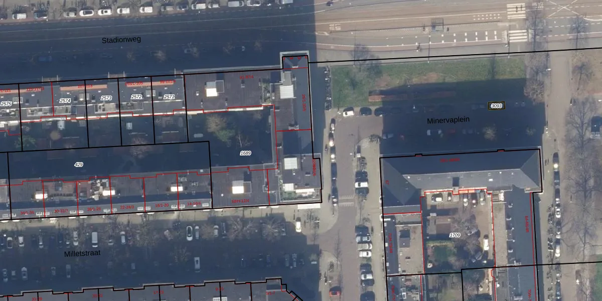 Minervaplein 34-1 is gelegen op kadastraal perceel ASD23AB1689. Deze kadastrale aanduiding is uniek en wordt gebruikt door het Kadaster om eigendomsrechten en andere zakelijke rechten vast te leggen. Het perceel maakt onderdeel uit van de kadastrale gemeente Amsterdam.