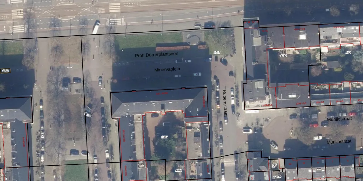 Het perceel waarop Minervaplein 37-4 staat heeft een oppervlakte van 1995 m². Dit is een zeer groot perceel. De perceeloppervlakte wordt geregistreerd door het Kadaster. Gedetailleerde informatie over de maten van dit perceel kunt u vinden in het rapport Kadastrale kaart met maatvoering van Minervaplein 37-4.