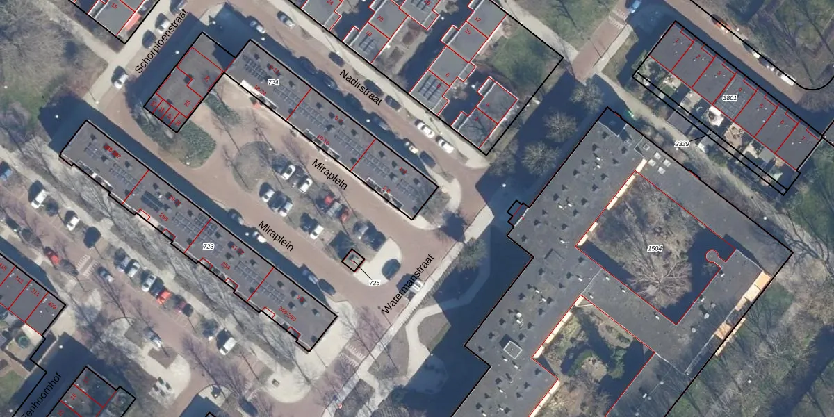 Het perceel waarop Miraplein 2 staat heeft een oppervlakte van 810 m². Dit is een groot perceel. De perceeloppervlakte wordt geregistreerd door het Kadaster. Gedetailleerde informatie over de maten van dit perceel kunt u vinden in het rapport Kadastrale kaart met maatvoering van Miraplein 2.