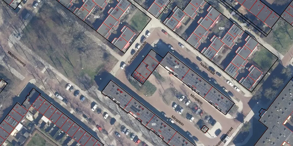 Het perceel waarop Miraplein 28 staat heeft een oppervlakte van 810 m². Dit is een groot perceel. De perceeloppervlakte wordt geregistreerd door het Kadaster. Gedetailleerde informatie over de maten van dit perceel kunt u vinden in het rapport Kadastrale kaart met maatvoering van Miraplein 28.