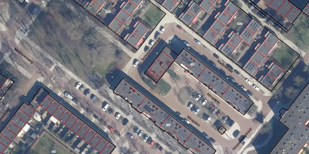 Het perceel waarop Miraplein 32 staat heeft een oppervlakte van 810 m². Dit is een groot perceel. De perceeloppervlakte wordt geregistreerd door het Kadaster. Gedetailleerde informatie over de maten van dit perceel kunt u vinden in het rapport Kadastrale kaart met maatvoering van Miraplein 32.