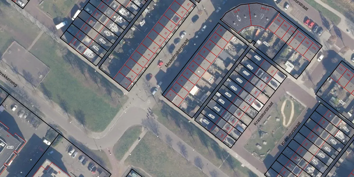 Het perceel waarop Modelmakerstraat 4 staat heeft een oppervlakte van 1109 m². Dit is een zeer groot perceel. De perceeloppervlakte wordt geregistreerd door het Kadaster. Gedetailleerde informatie over de maten van dit perceel kunt u vinden in het rapport Kadastrale kaart met maatvoering van Modelmakerstraat 4.