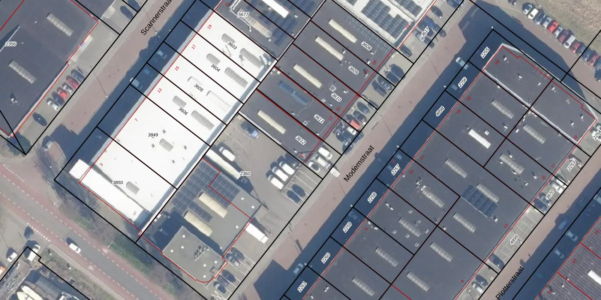 Het perceel waarop Modemstraat 11 staat heeft een oppervlakte van 385 m². Dit is een groot perceel. De perceeloppervlakte wordt geregistreerd door het Kadaster. Gedetailleerde informatie over de maten van dit perceel kunt u vinden in het rapport Kadastrale kaart met maatvoering van Modemstraat 11.