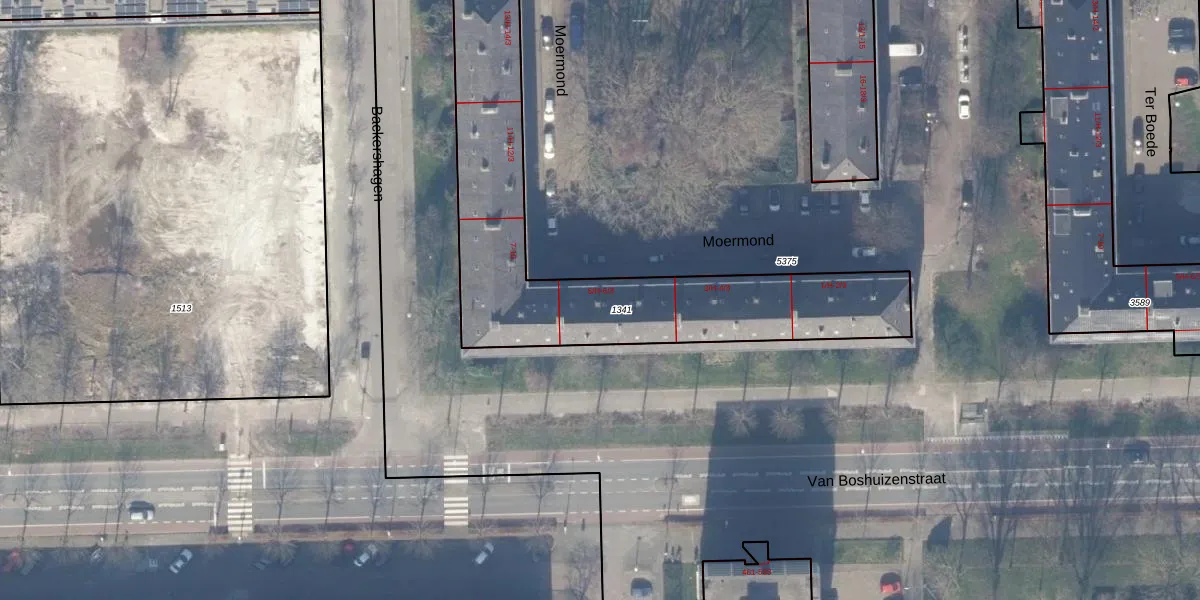 Het perceel waarop Moermond 6-3 staat heeft een oppervlakte van 1374 m². Dit is een zeer groot perceel. De perceeloppervlakte wordt geregistreerd door het Kadaster. Gedetailleerde informatie over de maten van dit perceel kunt u vinden in het rapport Kadastrale kaart met maatvoering van Moermond 6-3.