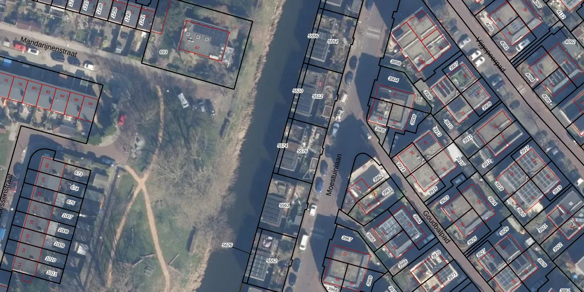 Gebruik de zoekbalk of klik op een perceel voor informatie over de adressen binnen dit perceel.