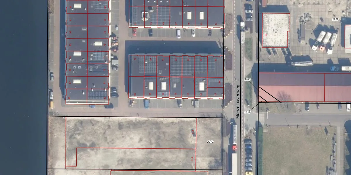 Het perceel waarop Moezelhavenweg 19 staat heeft een oppervlakte van 8850 m². Dit is een zeer groot perceel. De perceeloppervlakte wordt geregistreerd door het Kadaster. Gedetailleerde informatie over de maten van dit perceel kunt u vinden in het rapport Kadastrale kaart met maatvoering van Moezelhavenweg 19.