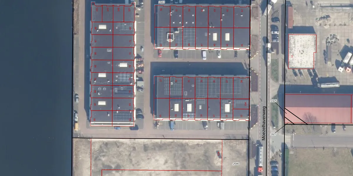 Het perceel waarop Moezelhavenweg 29 staat heeft een oppervlakte van 8850 m². Dit is een zeer groot perceel. De perceeloppervlakte wordt geregistreerd door het Kadaster. Gedetailleerde informatie over de maten van dit perceel kunt u vinden in het rapport Kadastrale kaart met maatvoering van Moezelhavenweg 29.