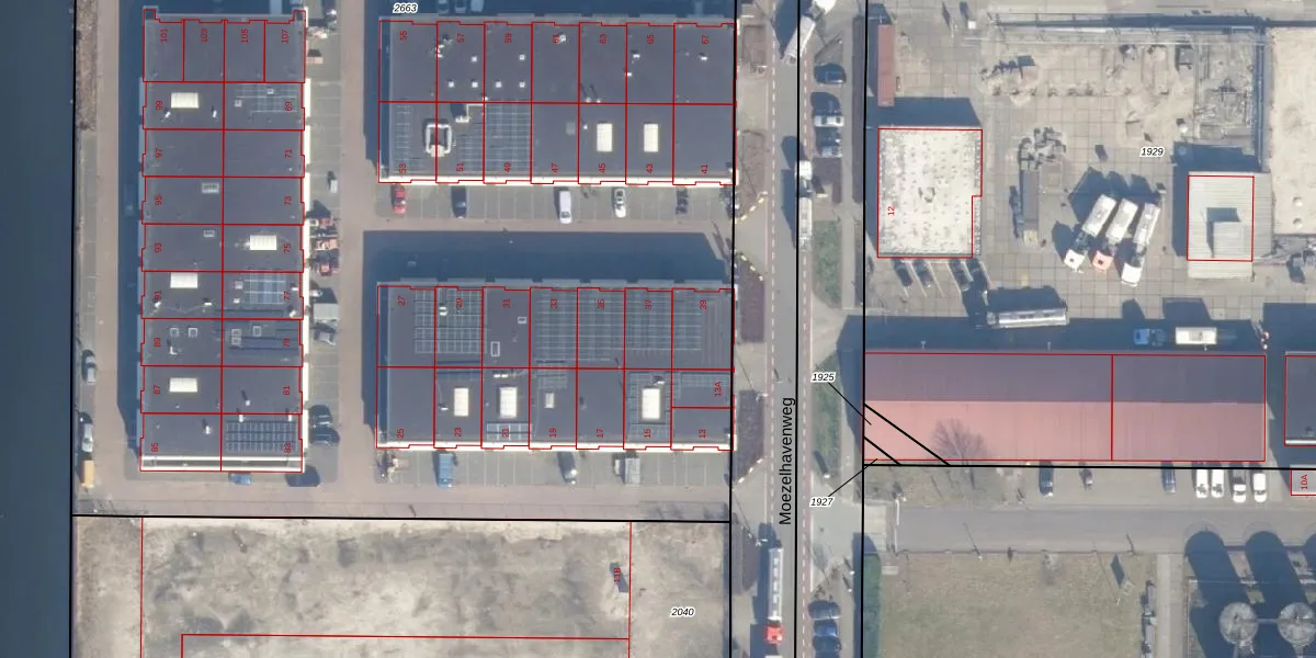 Het perceel waarop Moezelhavenweg 37 staat heeft een oppervlakte van 8850 m². Dit is een zeer groot perceel. De perceeloppervlakte wordt geregistreerd door het Kadaster. Gedetailleerde informatie over de maten van dit perceel kunt u vinden in het rapport Kadastrale kaart met maatvoering van Moezelhavenweg 37.