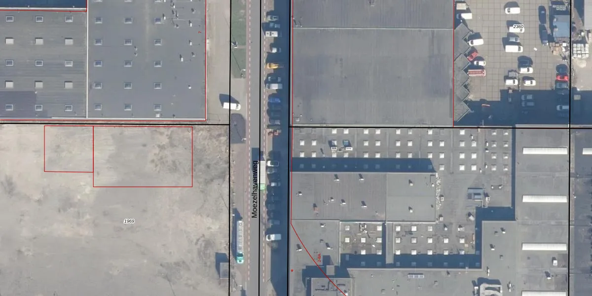 Het perceel waarop Moezelhavenweg 6 staat heeft een oppervlakte van 6595 m². Dit is een zeer groot perceel. De perceeloppervlakte wordt geregistreerd door het Kadaster. Gedetailleerde informatie over de maten van dit perceel kunt u vinden in het rapport Kadastrale kaart met maatvoering van Moezelhavenweg 6.