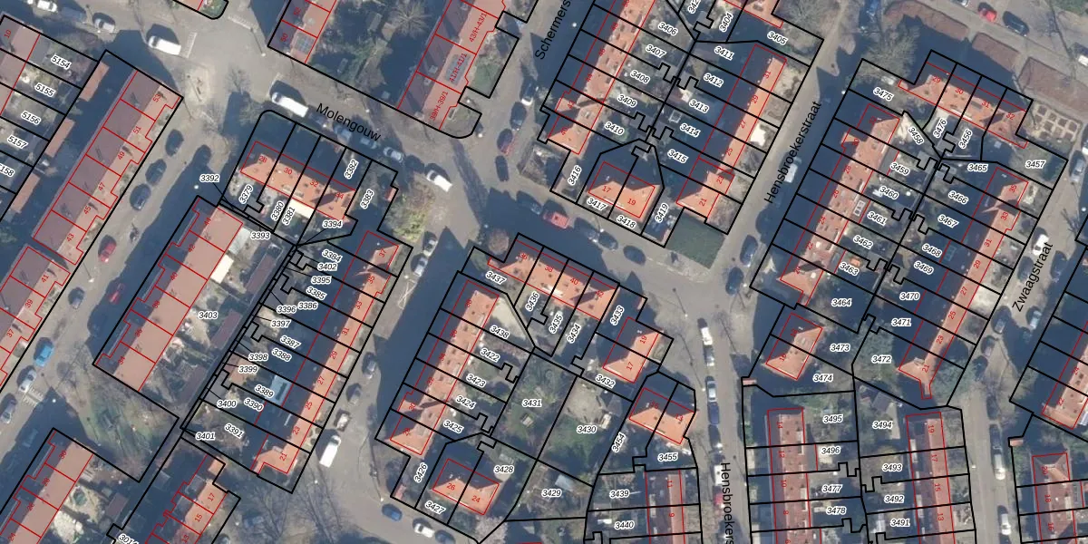 Gebruik de zoekbalk of klik op een perceel voor informatie over de adressen binnen dit perceel.