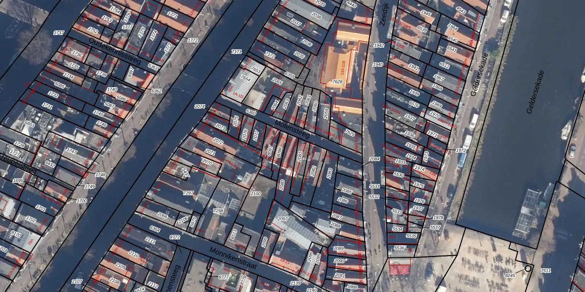 Molensteeg 10-A is gelegen op kadastraal perceel ASD05G2080. Deze kadastrale aanduiding is uniek en wordt gebruikt door het Kadaster om eigendomsrechten en andere zakelijke rechten vast te leggen. Het perceel maakt onderdeel uit van de kadastrale gemeente Amsterdam.