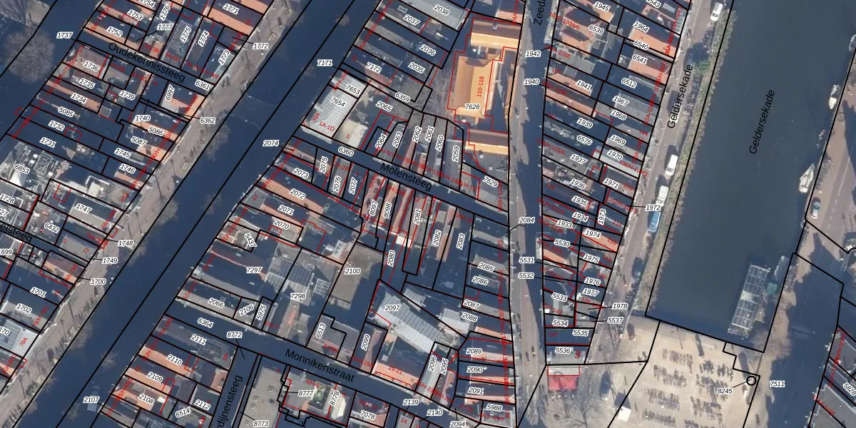 Het perceel waarop Molensteeg 14-B staat heeft een oppervlakte van 65 m². Dit is een klein perceel. De perceeloppervlakte wordt geregistreerd door het Kadaster. Gedetailleerde informatie over de maten van dit perceel kunt u vinden in het rapport Kadastrale kaart met maatvoering van Molensteeg 14-B.