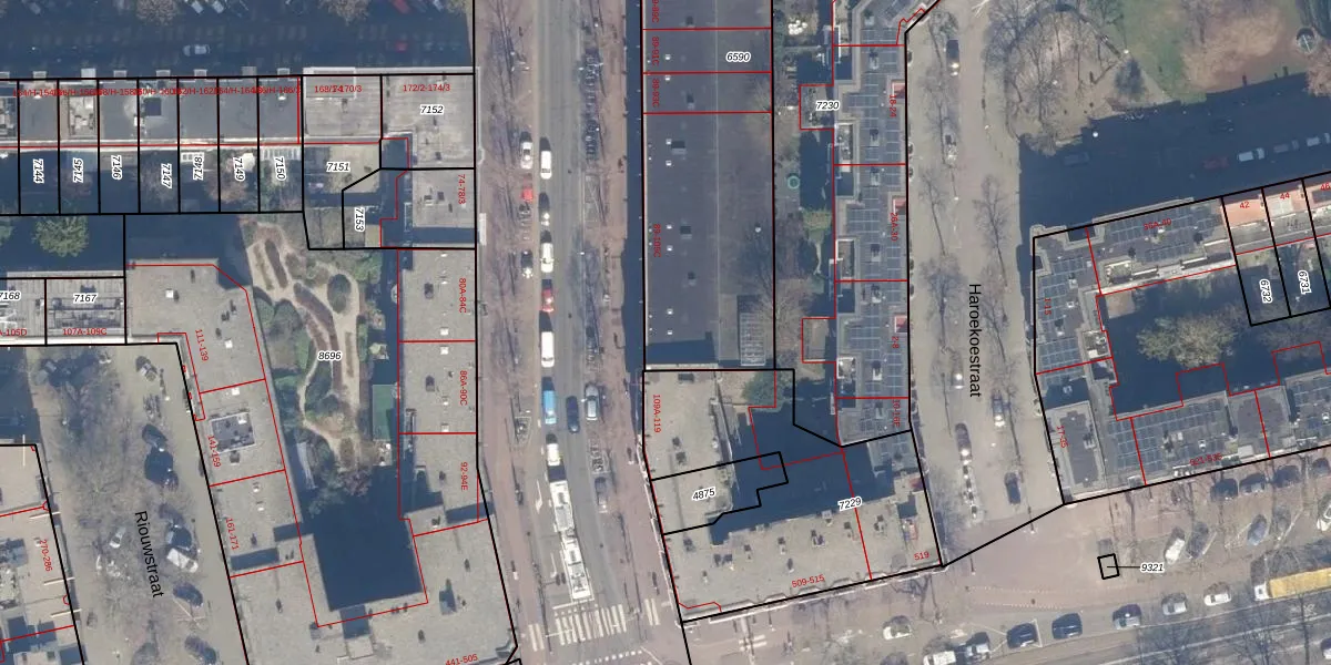 Het perceel waarop het adres ligt is ASD19-W-6590. De afkorting 'ASD19' staat voor kadastrale gemeente Amsterdam. De gemiddelde perceelgrootte in Amsterdam is 1563,05 m². Dit perceel is kleiner: de perceeloppervlakte bedraagt 1400 m². Het grootste perceel in de kadastrale gemeente is 17,9 ha. Het kleinste perceel heeft een oppervlakte van 0 m². Op het perceel zijn 36 adressen aanwezig. De huidige grenzen van het perceel zijn digitaal in de Basisregistratie Kadaster (BRK) geregistreerd op 05-02-2007.
