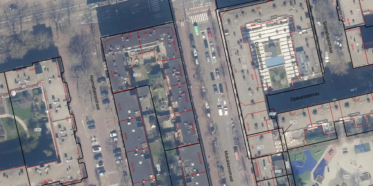 Het perceel waarop Molukkenstraat 106-C staat heeft een oppervlakte van 1930 m². Dit is een zeer groot perceel. De perceeloppervlakte wordt geregistreerd door het Kadaster. Gedetailleerde informatie over de maten van dit perceel kunt u vinden in het rapport Kadastrale kaart met maatvoering van Molukkenstraat 106-C.