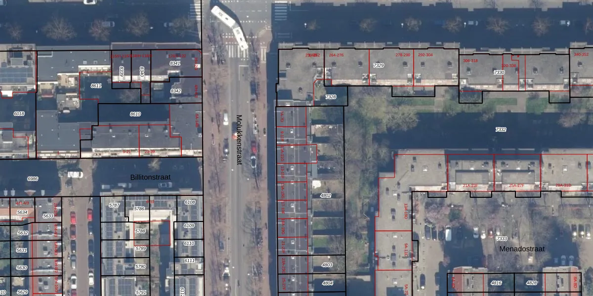 Het perceel waarop Molukkenstraat 11-F staat heeft een oppervlakte van 1128 m². Dit is een zeer groot perceel. De perceeloppervlakte wordt geregistreerd door het Kadaster. Gedetailleerde informatie over de maten van dit perceel kunt u vinden in het rapport Kadastrale kaart met maatvoering van Molukkenstraat 11-F.