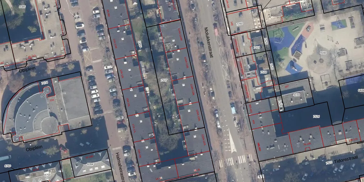 Het perceel waarop Molukkenstraat 118-K staat heeft een oppervlakte van 1207 m². Dit is een zeer groot perceel. De perceeloppervlakte wordt geregistreerd door het Kadaster. Gedetailleerde informatie over de maten van dit perceel kunt u vinden in het rapport Kadastrale kaart met maatvoering van Molukkenstraat 118-K.