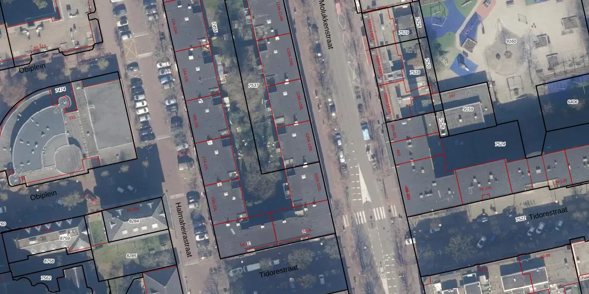 Het perceel waarop Molukkenstraat 120-L staat heeft een oppervlakte van 1207 m². Dit is een zeer groot perceel. De perceeloppervlakte wordt geregistreerd door het Kadaster. Gedetailleerde informatie over de maten van dit perceel kunt u vinden in het rapport Kadastrale kaart met maatvoering van Molukkenstraat 120-L.