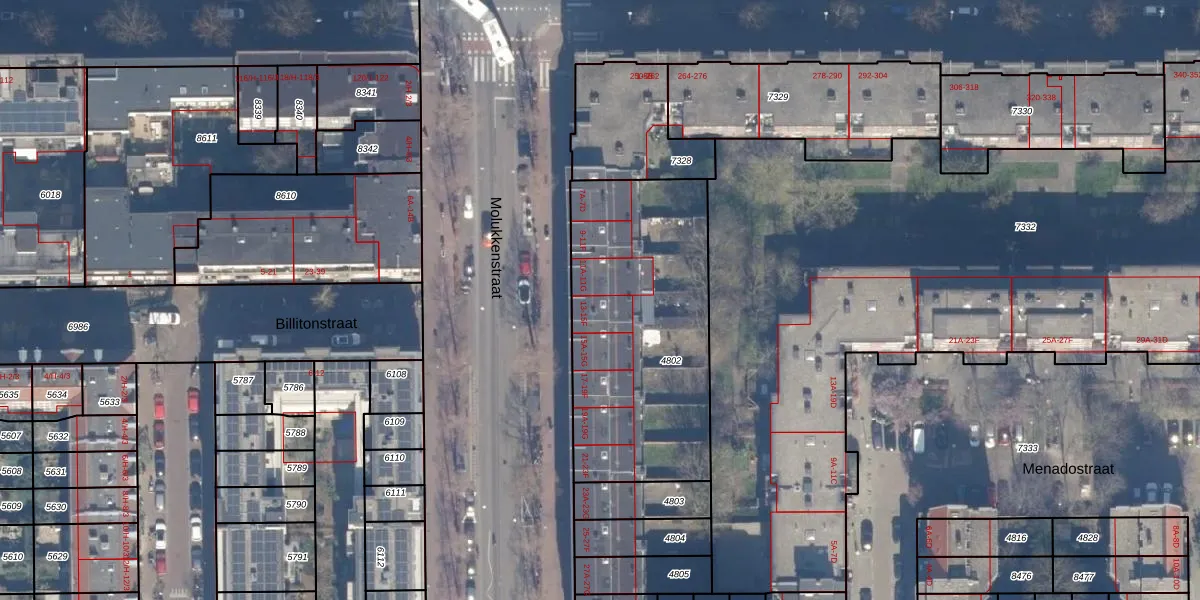 Het perceel waarop Molukkenstraat 15-C staat heeft een oppervlakte van 1128 m². Dit is een zeer groot perceel. De perceeloppervlakte wordt geregistreerd door het Kadaster. Gedetailleerde informatie over de maten van dit perceel kunt u vinden in het rapport Kadastrale kaart met maatvoering van Molukkenstraat 15-C.
