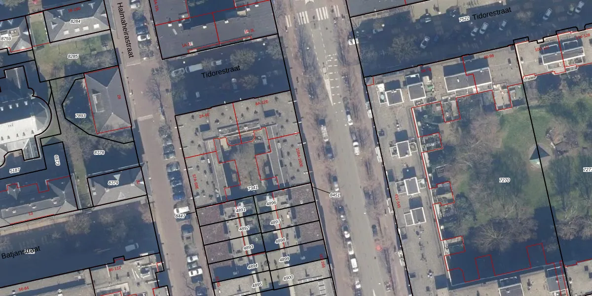 Het adres is gelegen op perceel 7341 in de sectie W en de kadastrale gemeente Amsterdam. De kadastrale aanduiding is aldus ASD19-W-7341. Het perceel is 1298 m² groot. Dat is kleiner dan de gemiddelde perceeloppervlakte in Amsterdam, dat op 1563,05 m² ligt. De grootste perceeloppervlakte in de kadastrale gemeente is 17,9 ha. De kleinste oppervlakte bedraagt 0 m². Op het perceel liggen in totaal 50 adressen. De huidige grenzen van het perceel zijn digitaal in de Basisregistratie Kadaster (BRK) geregistreerd op 05-02-2007.