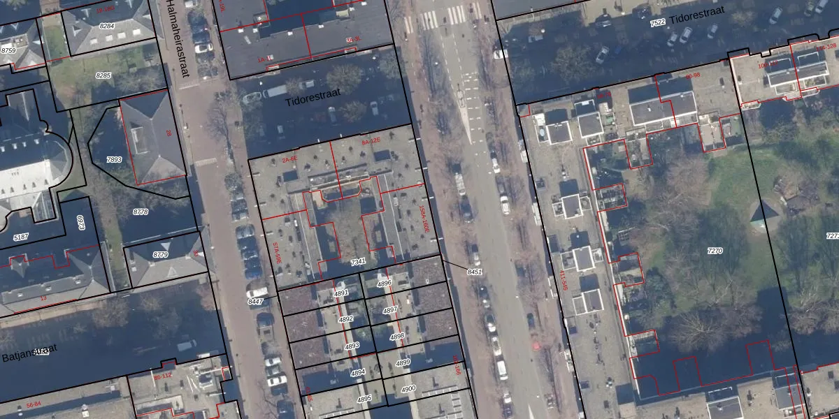 Het adres is gelegen op perceel 7341 in de sectie W en de kadastrale gemeente Amsterdam. De kadastrale aanduiding is aldus ASD19-W-7341. Het perceel is 1298 m² groot. Dat is kleiner dan de gemiddelde perceeloppervlakte in Amsterdam, dat op 1563,05 m² ligt. De grootste perceeloppervlakte in de kadastrale gemeente is 17,9 ha. De kleinste oppervlakte bedraagt 0 m². Op het perceel liggen in totaal 50 adressen. De laatste wijziging in het de Basisregistratie Kadaster (BRK) was op 05-02-2007.