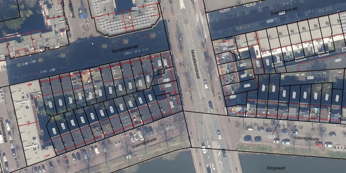 Het perceel waarop Molukkenstraat 186-2 staat heeft een oppervlakte van 95 m². Dit is een klein perceel. De perceeloppervlakte wordt geregistreerd door het Kadaster. Gedetailleerde informatie over de maten van dit perceel kunt u vinden in het rapport Kadastrale kaart met maatvoering van Molukkenstraat 186-2.