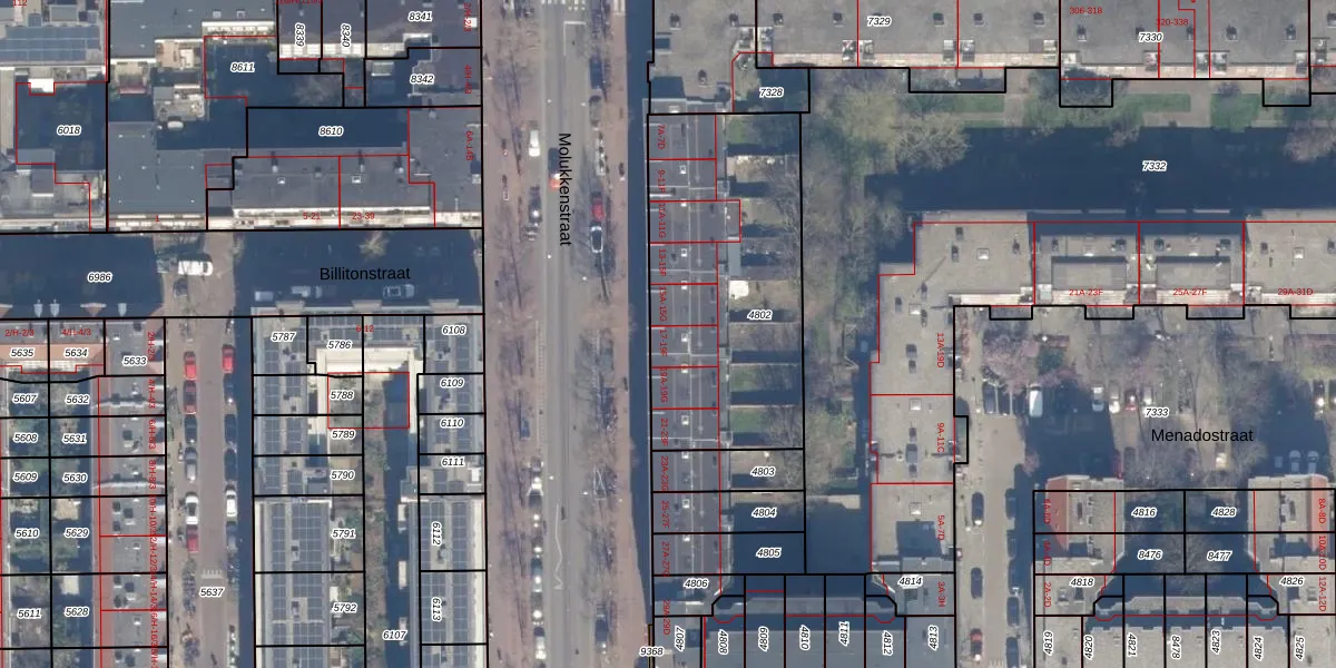 Het perceel waarop Molukkenstraat 19-A staat heeft een oppervlakte van 1128 m². Dit is een zeer groot perceel. De perceeloppervlakte wordt geregistreerd door het Kadaster. Gedetailleerde informatie over de maten van dit perceel kunt u vinden in het rapport Kadastrale kaart met maatvoering van Molukkenstraat 19-A.