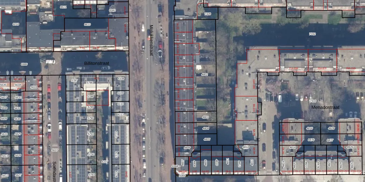 Het perceel waarop Molukkenstraat 19-B staat heeft een oppervlakte van 1128 m². Dit is een zeer groot perceel. De perceeloppervlakte wordt geregistreerd door het Kadaster. Gedetailleerde informatie over de maten van dit perceel kunt u vinden in het rapport Kadastrale kaart met maatvoering van Molukkenstraat 19-B.