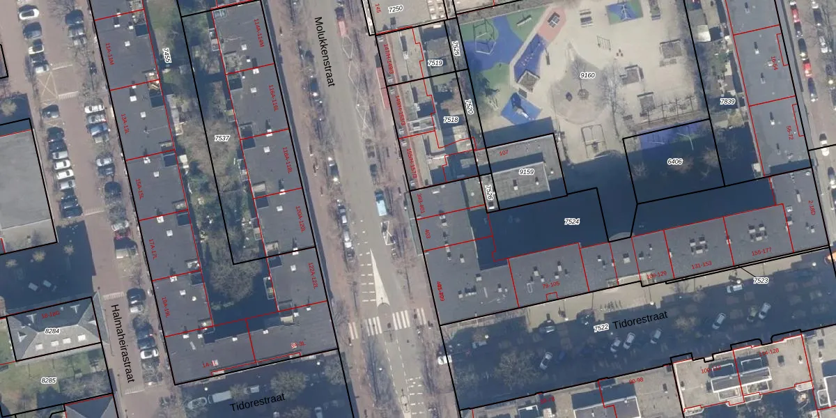 Het perceel waarop Molukkenstraat 401 staat heeft een oppervlakte van 2118 m². Dit is een zeer groot perceel. De perceeloppervlakte wordt geregistreerd door het Kadaster. Gedetailleerde informatie over de maten van dit perceel kunt u vinden in het rapport Kadastrale kaart met maatvoering van Molukkenstraat 401.