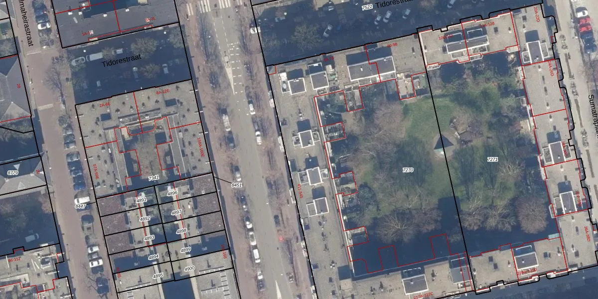 Het adres is gelegen op perceel 7270 in de sectie W en de kadastrale gemeente Amsterdam. De kadastrale aanduiding is aldus ASD19-W-7270. De oppervlakte van het perceel is 4571 m². Dat is groter dan gemiddeld in Amsterdam, waar de gemiddelde perceeloppervlakte op 1563,05 m² ligt. Het grootste perceel in de kadastrale gemeente is 17,9 ha. Het kleinste perceel heeft een oppervlakte van 0 m². Op het perceel liggen in totaal 108 adressen. De laatste wijziging in het de Basisregistratie Kadaster (BRK) was op 05-02-2007.