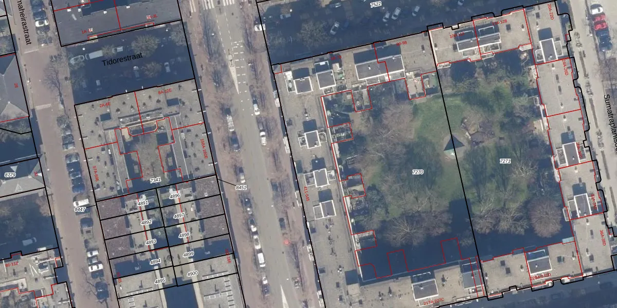Het adres is gelegen op perceel 7270 in de sectie W en de kadastrale gemeente Amsterdam. De kadastrale aanduiding is aldus ASD19-W-7270. De oppervlakte van het perceel is 4571 m². Dat is groter dan gemiddeld in Amsterdam, waar de gemiddelde perceeloppervlakte op 1563,05 m² ligt. Het grootste perceel in de kadastrale gemeente is 17,9 ha. Het kleinste perceel heeft een oppervlakte van 0 m². Op het perceel liggen in totaal 108 adressen. In de Basisregistratie Kadaster (BRK) werden de grenzen van het perceel geregistreerd op 05-02-2007.