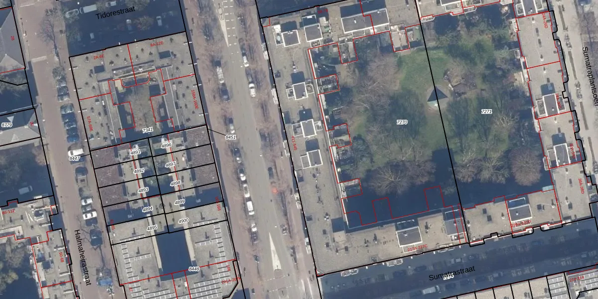 Het perceel waarop Molukkenstraat 465 staat heeft een oppervlakte van 4571 m². Dit is een zeer groot perceel. De perceeloppervlakte wordt geregistreerd door het Kadaster. Gedetailleerde informatie over de maten van dit perceel kunt u vinden in het rapport Kadastrale kaart met maatvoering van Molukkenstraat 465.