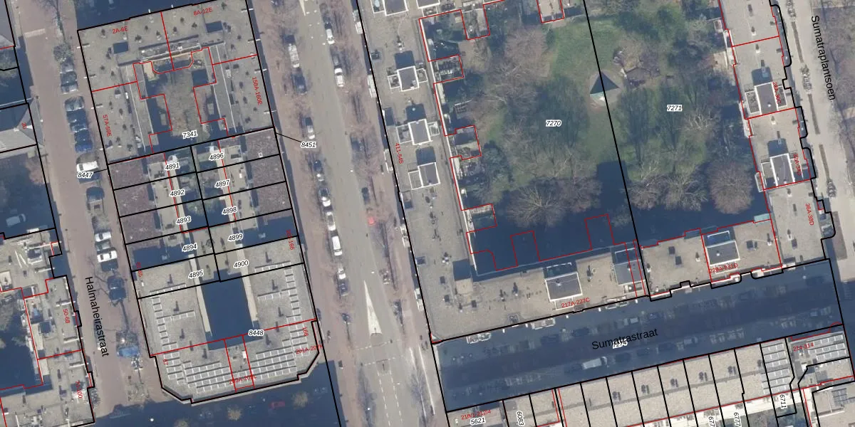 Het perceel waarop Molukkenstraat 479 staat heeft een oppervlakte van 4571 m². Dit is een zeer groot perceel. De perceeloppervlakte wordt geregistreerd door het Kadaster. Gedetailleerde informatie over de maten van dit perceel kunt u vinden in het rapport Kadastrale kaart met maatvoering van Molukkenstraat 479.
