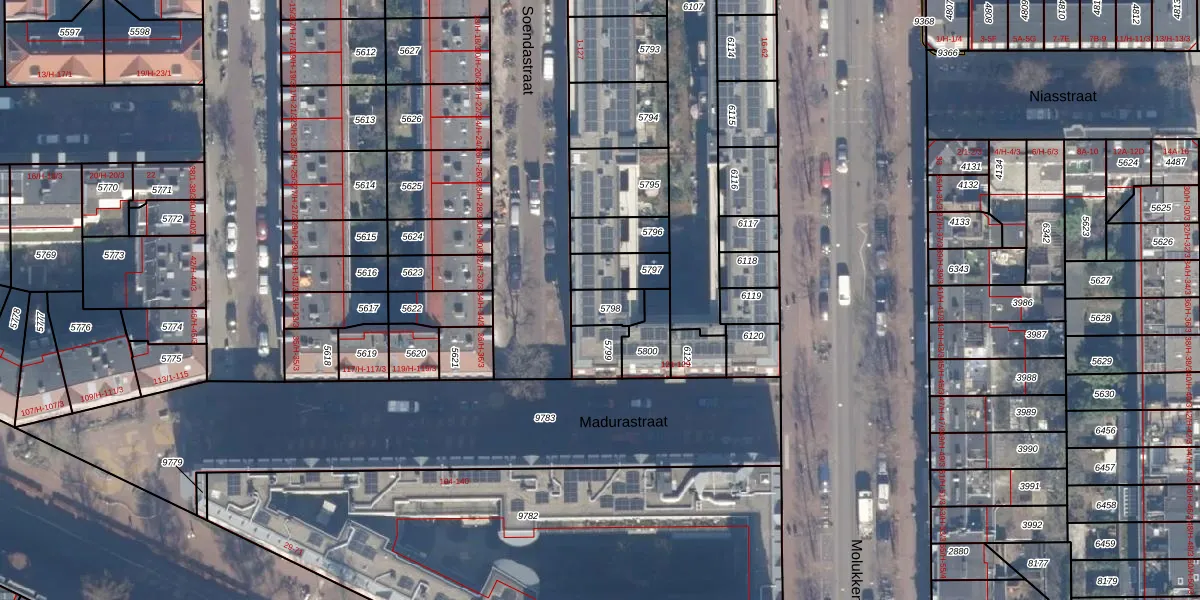 Het perceel waarop Molukkenstraat 48-R staat heeft een oppervlakte van 73 m². Dit is een klein perceel. De perceeloppervlakte wordt geregistreerd door het Kadaster. Gedetailleerde informatie over de maten van dit perceel kunt u vinden in het rapport Kadastrale kaart met maatvoering van Molukkenstraat 48-R.