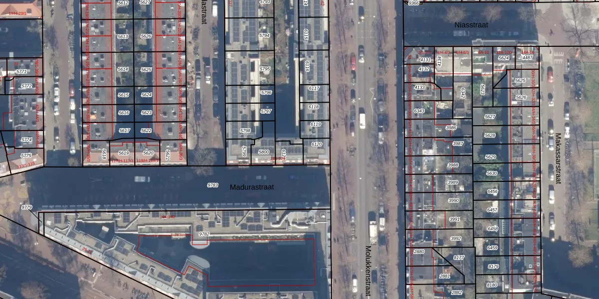 Het perceel waarop Molukkenstraat 48-M staat heeft een oppervlakte van 66 m². Dit is een klein perceel. De perceeloppervlakte wordt geregistreerd door het Kadaster. Gedetailleerde informatie over de maten van dit perceel kunt u vinden in het rapport Kadastrale kaart met maatvoering van Molukkenstraat 48-M.