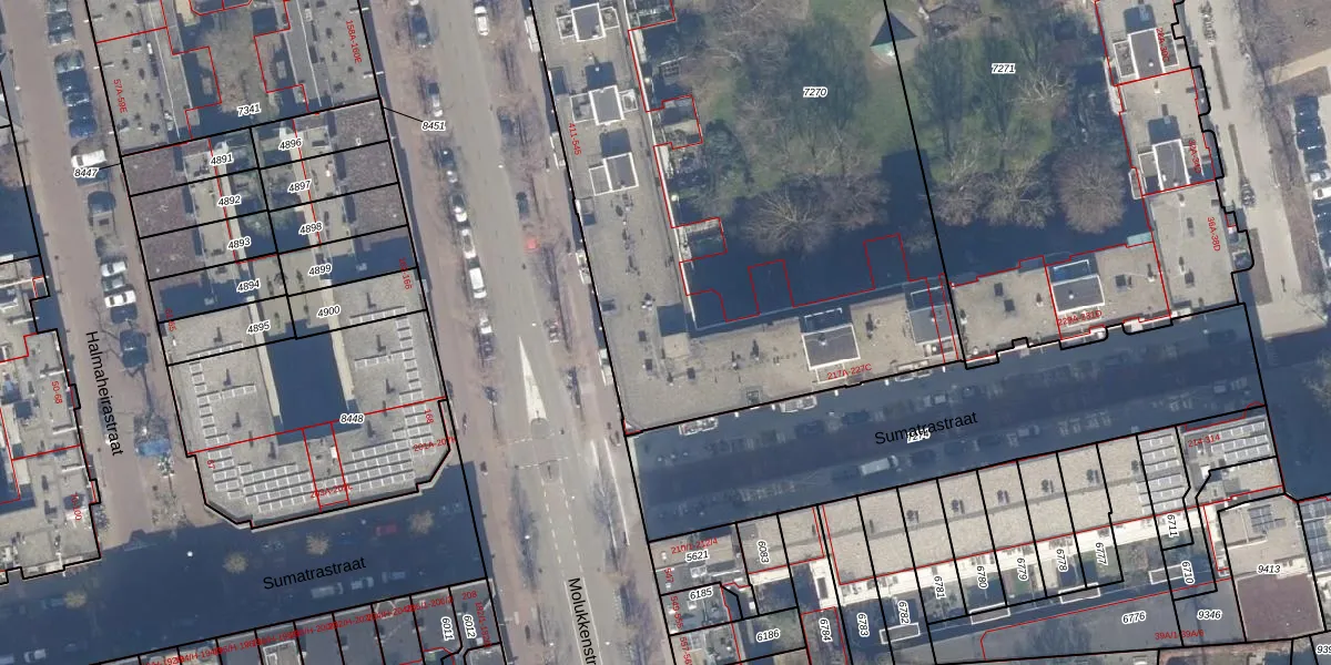 Het perceel waarop Molukkenstraat 495 staat heeft een oppervlakte van 4571 m². Dit is een zeer groot perceel. De perceeloppervlakte wordt geregistreerd door het Kadaster. Gedetailleerde informatie over de maten van dit perceel kunt u vinden in het rapport Kadastrale kaart met maatvoering van Molukkenstraat 495.