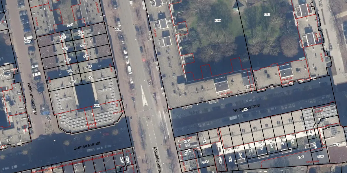 Het perceel waarop Molukkenstraat 531 staat heeft een oppervlakte van 4571 m². Dit is een zeer groot perceel. De perceeloppervlakte wordt geregistreerd door het Kadaster. Gedetailleerde informatie over de maten van dit perceel kunt u vinden in het rapport Kadastrale kaart met maatvoering van Molukkenstraat 531.