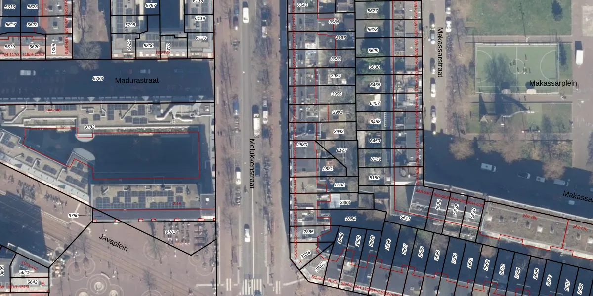 Het perceel waarop Molukkenstraat 55-4 staat heeft een oppervlakte van 74 m². Dit is een klein perceel. De perceeloppervlakte wordt geregistreerd door het Kadaster. Gedetailleerde informatie over de maten van dit perceel kunt u vinden in het rapport Kadastrale kaart met maatvoering van Molukkenstraat 55-4.