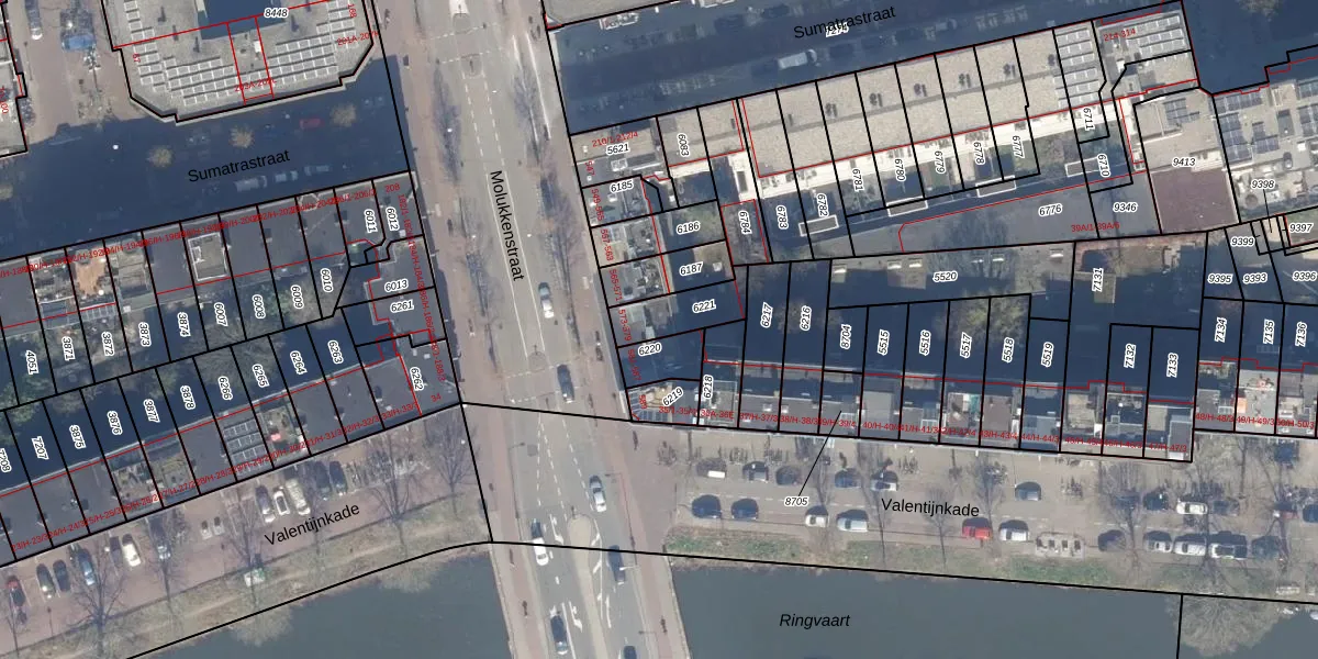 Het adres is gelegen op perceel 6221 in de sectie W en de kadastrale gemeente Amsterdam. De kadastrale aanduiding is aldus ASD19-W-6221. Het perceel is 132 m² groot. Dat is kleiner dan de gemiddelde perceeloppervlakte in Amsterdam, dat op 1563,05 m² ligt. Het grootste perceel in de kadastrale gemeente is 17,9 ha. Het kleinste perceel heeft een oppervlakte van 0 m². Op het perceel liggen in totaal 4 adressen. De huidige grenzen van het perceel zijn digitaal in de Basisregistratie Kadaster (BRK) geregistreerd op 05-02-2007.