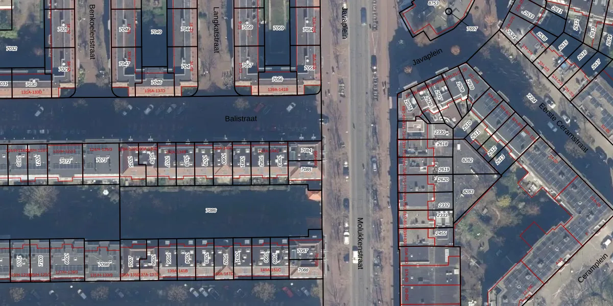 Het perceel waarop Molukkenstraat 66-C staat heeft een oppervlakte van 70 m². Dit is een klein perceel. De perceeloppervlakte wordt geregistreerd door het Kadaster. Gedetailleerde informatie over de maten van dit perceel kunt u vinden in het rapport Kadastrale kaart met maatvoering van Molukkenstraat 66-C.