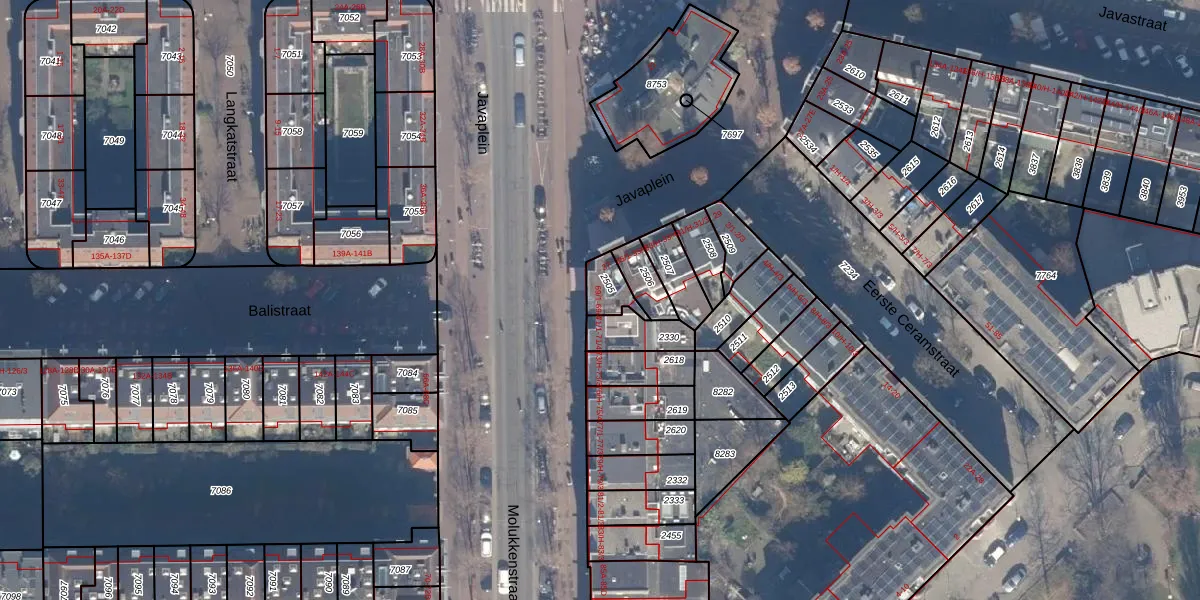 Het perceel waarop Molukkenstraat 69-1 staat heeft een oppervlakte van 62 m². Dit is een klein perceel. De perceeloppervlakte wordt geregistreerd door het Kadaster. Gedetailleerde informatie over de maten van dit perceel kunt u vinden in het rapport Kadastrale kaart met maatvoering van Molukkenstraat 69-1.