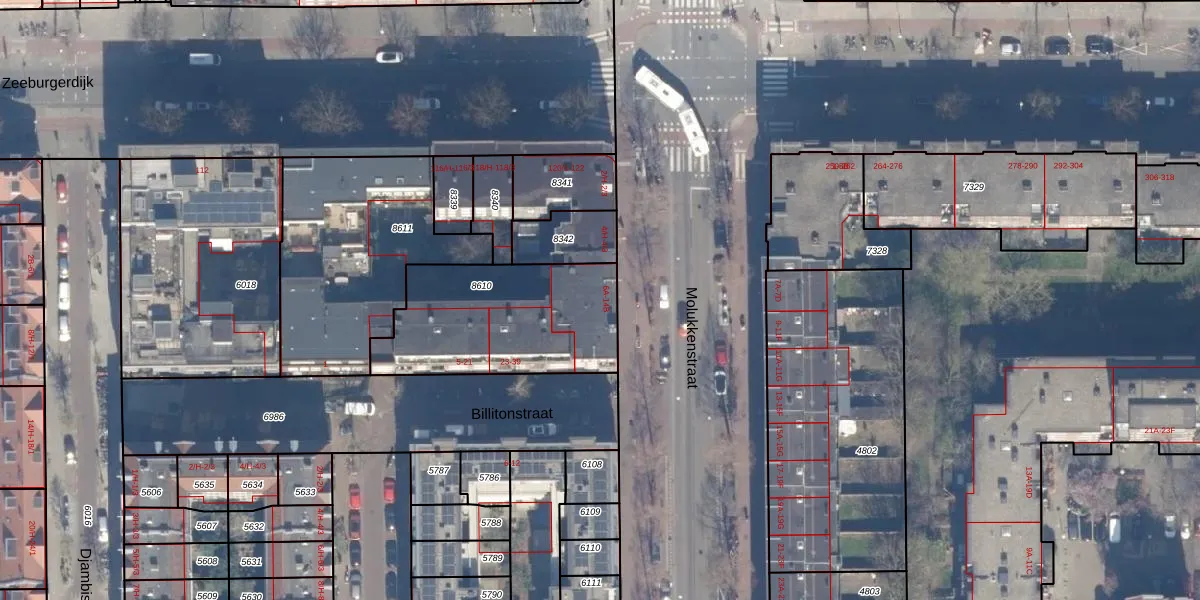 Het perceel waarop Molukkenstraat 8-A staat heeft een oppervlakte van 688 m². Dit is een groot perceel. De perceeloppervlakte wordt geregistreerd door het Kadaster. Gedetailleerde informatie over de maten van dit perceel kunt u vinden in het rapport Kadastrale kaart met maatvoering van Molukkenstraat 8-A.