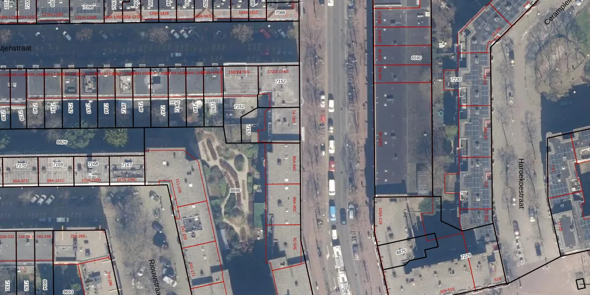 Het adres ligt op het perceel ASD15-S-8696, dat zich in de kadastrale gemeente Amsterdam bevindt. De gemiddelde perceeloppervlakte in de kadastrale gemeente Amsterdam is 537,06 m². Dit perceel is met zijn 3070 m² dus groter dan gemiddeld. De grootste perceeloppervlakte in de kadastrale gemeente is 14,5 ha. De kleinste oppervlakte bedraagt 0 m². Op het perceel zijn 90 adressen aanwezig. In de Basisregistratie Kadaster (BRK) werden de grenzen van het perceel geregistreerd op 05-02-2007.