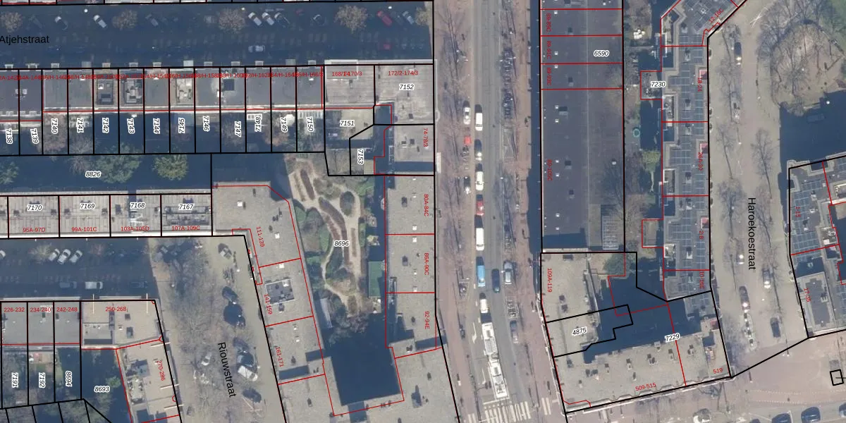 Het perceel waarop Molukkenstraat 82-C staat heeft een oppervlakte van 3070 m². Dit is een zeer groot perceel. De perceeloppervlakte wordt geregistreerd door het Kadaster. Gedetailleerde informatie over de maten van dit perceel kunt u vinden in het rapport Kadastrale kaart met maatvoering van Molukkenstraat 82-C.