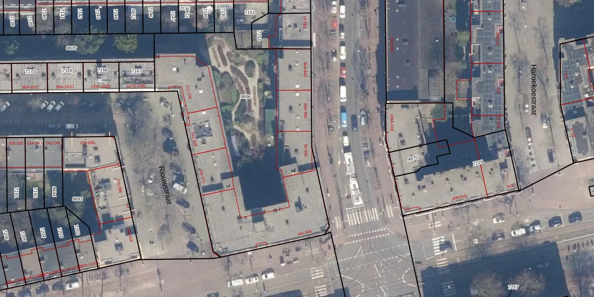 Het adres ligt op het perceel ASD15-S-8696, dat zich in de kadastrale gemeente Amsterdam bevindt. De gemiddelde perceeloppervlakte in de kadastrale gemeente Amsterdam is 537,06 m². Dit perceel is met zijn 3070 m² dus groter dan gemiddeld. Het grootste perceel in de kadastrale gemeente is 14,5 ha. Het kleinste perceel heeft een oppervlakte van 0 m². Op het perceel zijn 90 adressen aanwezig. In de Basisregistratie Kadaster (BRK) werden de grenzen van het perceel geregistreerd op 05-02-2007.
