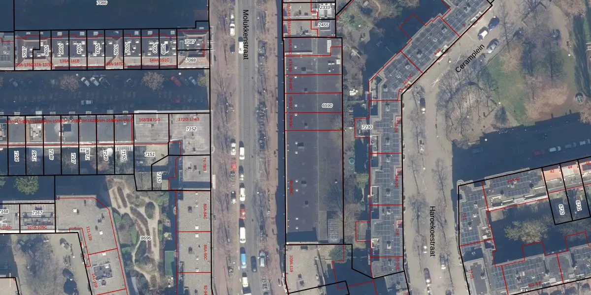 Molukkenstraat 95-B is gelegen op kadastraal perceel ASD19W6590. Deze kadastrale aanduiding is uniek en wordt gebruikt door het Kadaster om eigendomsrechten en andere zakelijke rechten vast te leggen. Het perceel maakt onderdeel uit van de kadastrale gemeente Amsterdam.