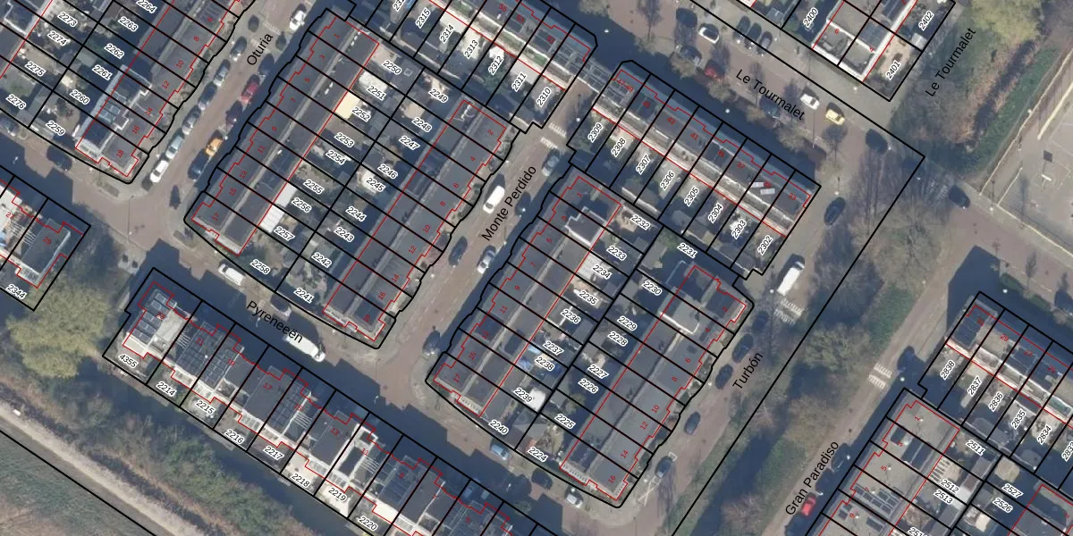 Het perceel waarop Monte Perdido 7 staat heeft een oppervlakte van 108 m². Dit is een middelgroot perceel. De perceeloppervlakte wordt geregistreerd door het Kadaster. Gedetailleerde informatie over de maten van dit perceel kunt u vinden in het rapport Kadastrale kaart met maatvoering van Monte Perdido 7.
