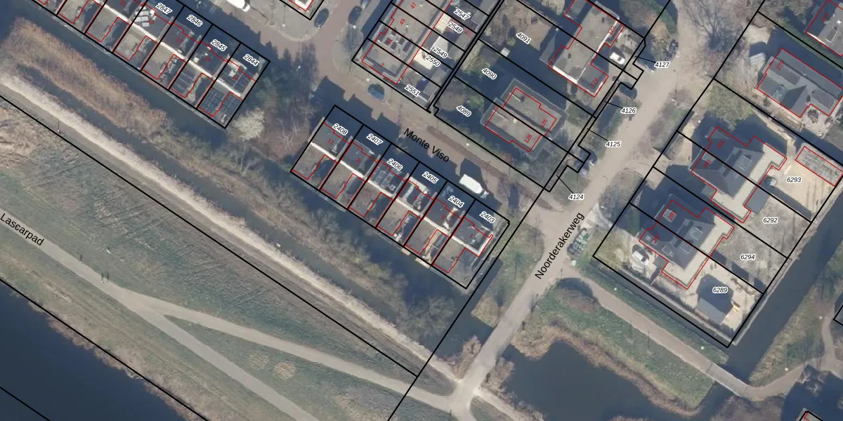 Het perceel waarop Monte Viso 5 staat heeft een oppervlakte van 152 m². Dit is een middelgroot perceel. De perceeloppervlakte wordt geregistreerd door het Kadaster. Gedetailleerde informatie over de maten van dit perceel kunt u vinden in het rapport Kadastrale kaart met maatvoering van Monte Viso 5.